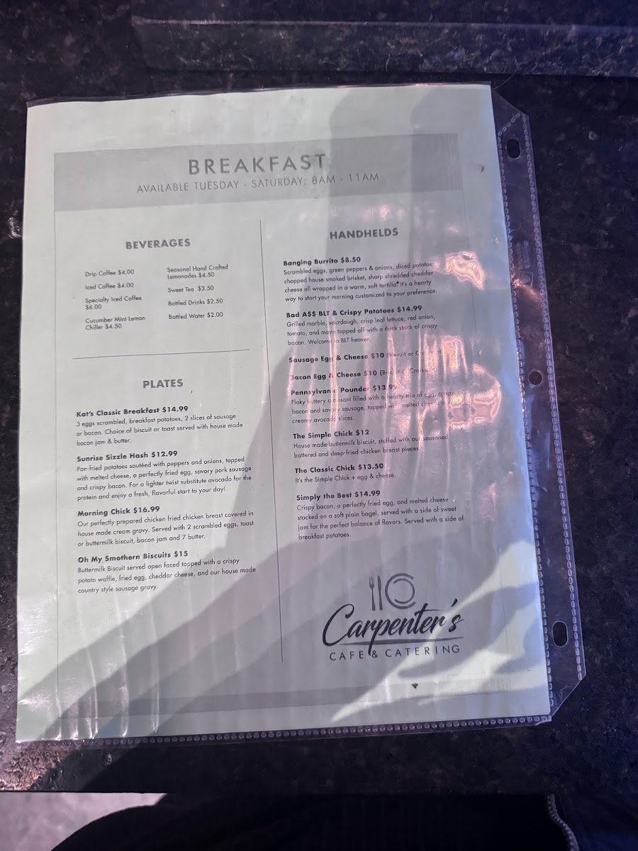 Carpenters Cafe & Catering Menu